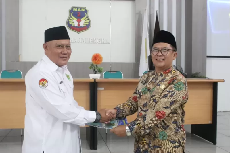 Majalengka (Kemenag) — MAN 2 Majalengka melaksanakan kegiatan pisah sambut kepala madrasah dari Bapak Yayan Ristaman Jaya, S.Pd., S.E., M.M. kepada kepala madrasah yang baru, Bapak H. Dodo Sunandi, M.Pd., pada Senin, (2/3 2026), bertempat di aula madrasah. Kegiatan tersebut dihadiri oleh Kepala Kantor Kementerian Agama Kabupaten Majalengka, Kepala Seksi Pendidikan Madrasah (Penmad), pengawas madrasah, civitas akademika MTsN 5 Majalengka, serta civitas akademika MAN 2 Majalengka.