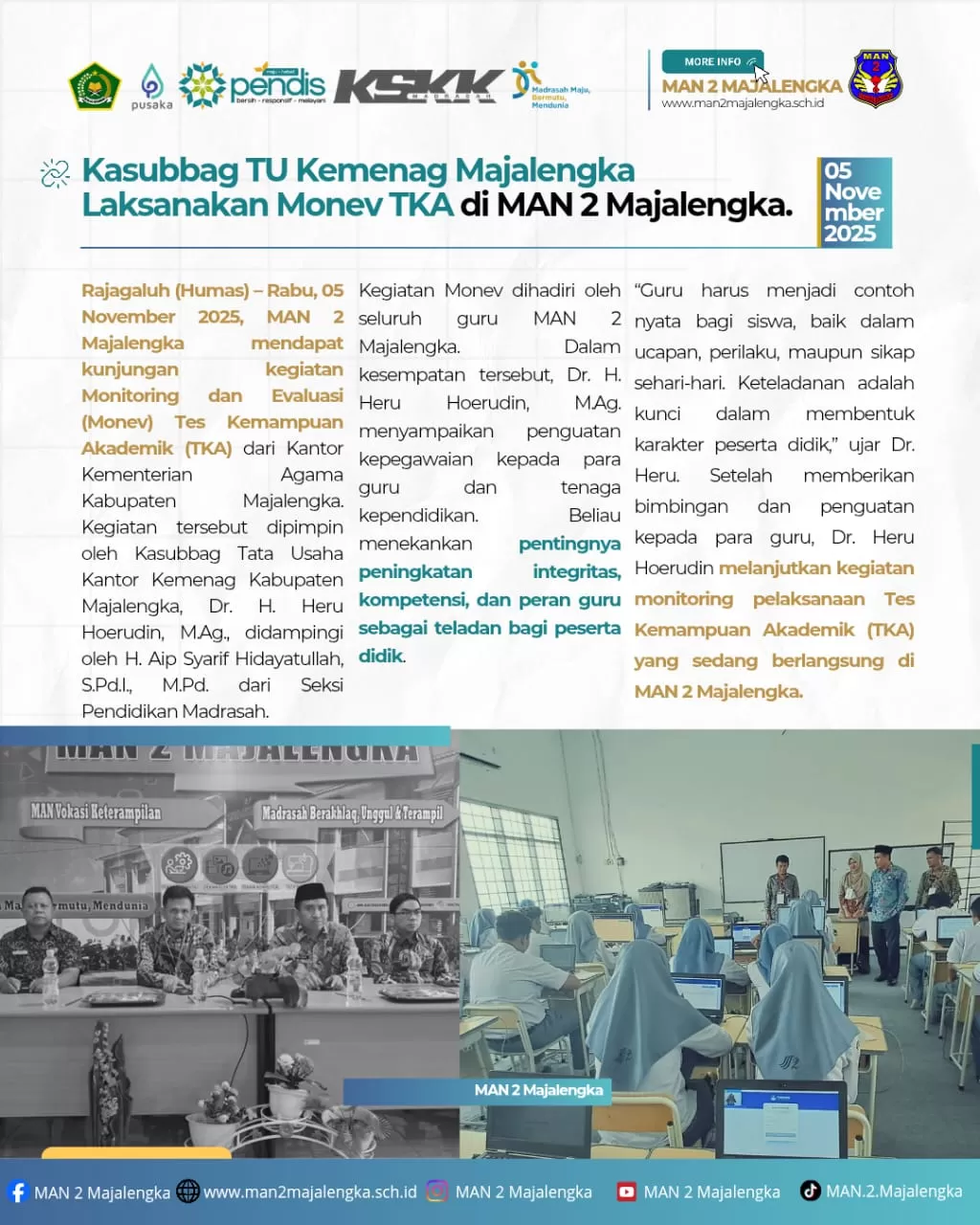 Sebagai lembaga pendidikan, MAN 2 Majalengka diharapkan tanggap dengan perkembangan teknologi informasi. Dengan dukungan SDM yang dimiliki, madrasah ini siap untuk berkompetisi dengan madrasah lain dalam pelayanan informasi publik. Teknologi Informasi Web khususnya, menjadi sarana bagi MAN 2 Majalengka untuk memberikan pelayanan informasi secara cepat, jelas, dan akuntabel. Dari layanan ini pula, MAN 2 Majalengka siap menerima saran dari semua pihak yang akhirnya dapat menjawab Kebutuhan masyarakat.